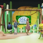 Para reforçar a mensagem, um espelho recepciona o público com frases de incentivo. Complementando a experiência é possível escorregar pela boca do Sapo que ficou gigante e brincar com as vitórias-régias projetadas no lago virtual.