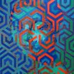 Realizando o casamento de imagens de ícones da historia da pintura com padrões formais sobrepostos digitalmente, o artista opera em duas instancias. Uma delas é a da manipulação e sobreposição de imagens no meio digital – enquanto a outra se desenvolve na transferência do que foi elaborado para a tela de pintura.