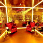 A ambientação reúne espelhos, luminárias, piso vinílico dourado, teto de lantejoulas dourado, duas mesas estilo Chipandelle e um par de poltronas, compondo um cenário criativo, estimulando a imaginação. A visitação segue até 25 de janeiro de 2026.