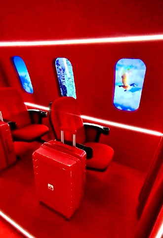 Ao iniciar a visitação no Mirante, no meio andar, entre o 26º e 25º, o público é convidado a embarcar no Farol Airlines, um espaço que reproduz o interior de um avião com destino ao próprio Farol Santander. O ambiente conta com duas poltronas, malas de bordo, cortinas, forração de piso em carpete, pintura acrílica, espelhos e placa sinalizadora, criando a sensação de estar realmente a bordo de um avião.