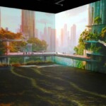 São Paulo 3024 — arte digital imersiva explora o encontro entre natureza e tecnologia, apresentando uma cidade do futuro onde esses elementos convivem de forma fluida. Nesse futuro, São Paulo se transforma em um ecossistema urbano, com ilhas flutuantes no céu, enquanto as civilizações prosperam no ambiente subterrâneo. Em meio a essas mudanças, os visitantes poderão perceber vestígios do presente, que simbolizam uma cidade que continua a evoluir, mantendo partes de sua essência.