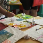 Oficina de Stencil em Tela: Explora a técnica de estampar desenhos passando tinta através de um stencil. A atividade incentiva a experimentar a técnica e soltar a criatividade.