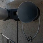 Já no 26º andar, onde localiza-se o Mirante, o artista brasileiro Rodrigo Ramos apresenta o trabalho “Espelho Sonoro”. A ideia é ampliar a percepção dos ambientes urbanos e naturais a partir da escuta. A obra é uma releitura de localizadores sonoros acústicos utilizados durante a Primeira Guerra Mundial (1914 – 1919) para localizar aviões, navios e tanques.